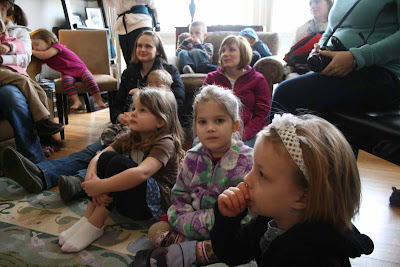 We had fun using our sniffers for the first half of our class. The kids had opinions about all the different smells - vanilla (yum), cinnamon (yum), mint (yum), orange (okay), soap (okay), perfume (yuck), onions (yuck), vinegar (yuck). Cinnamon was the favorite.
